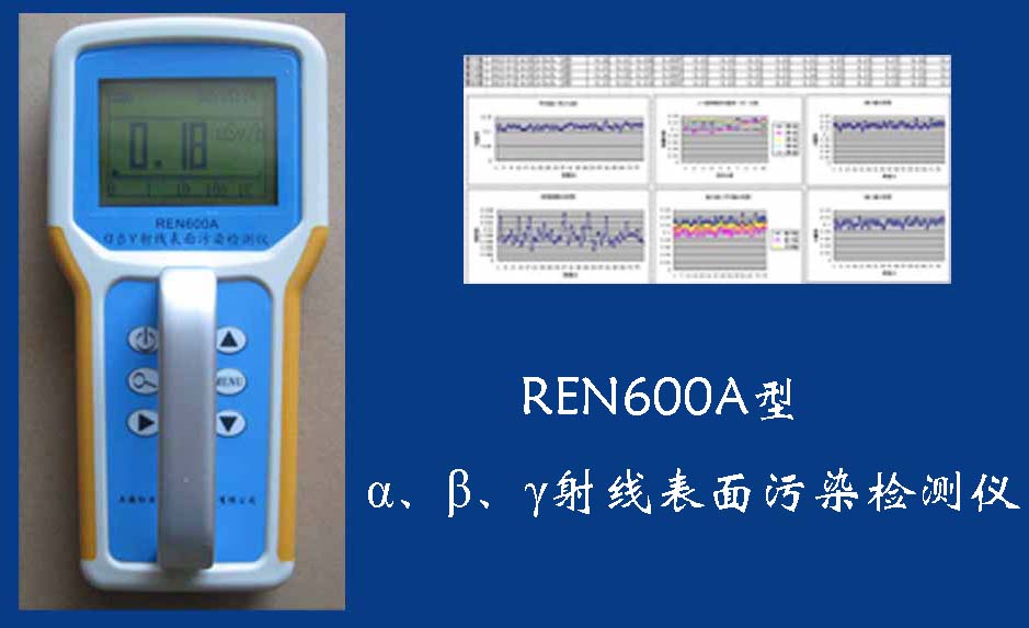 • REN600A 表面沾污檢測儀REN600A型α、β、γ射線表面污染檢測儀即可檢測α、β、γ射線,也能檢測到X射線,它采用高速嵌入式微處器作為數據處理單元,點陣式大屏幕LCD液晶顯示,讀數清晰、操作方便,具有400條超大容量數據存儲。儀器采用進口的大面積MICA蓋革探測器,具有較高探測效率,可進行α、β輻射表面污染檢測和X、γ輻射劑量率的監測。此外通過配套的RenriCont表面污染管理軟件可將存儲的數據讀出后分析。可廣泛用在制藥廠、實驗室、發電廠、進出口商檢、采石場、環境實驗室、環境污染調查、核安全應急、緊急狀況營救站、金屬處理廠、地下油田、供油管道裝備、醫院核醫學科、同位素實驗室、環境保護和警察局等部門。REN600A型α、β、γ射線表面